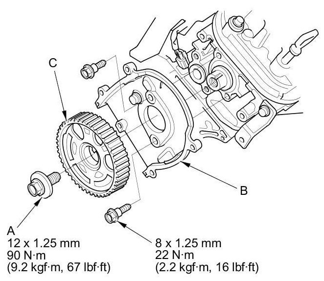 Camshaft Sprocket Bolt 90 N-m (9.2 kgf-m, 67 lbf-ft)