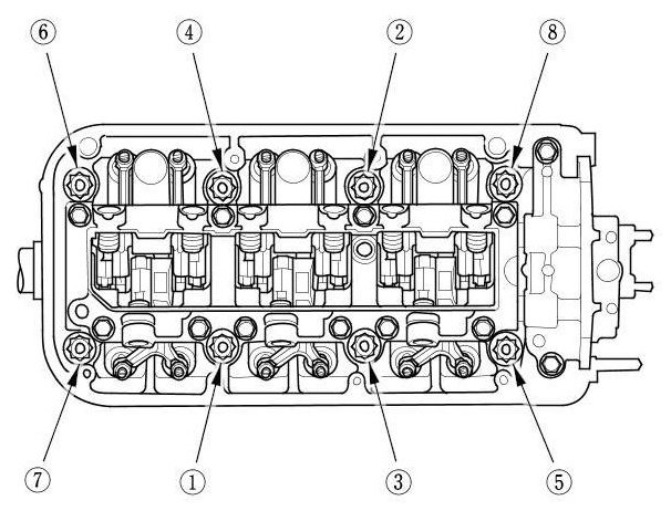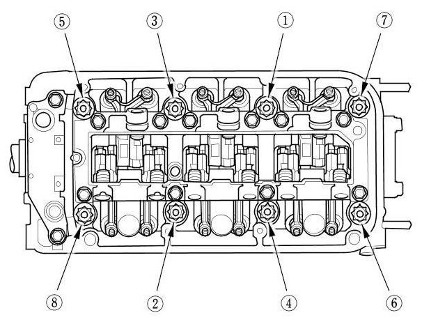 Torque the cylinder head bolts in sequence to 29 Nm (3.0 kg-m, 22 lb-ft)