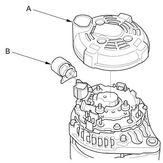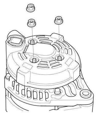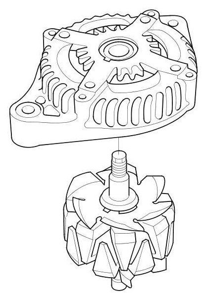 22. After assembling the alternator, turn the pulley by hand to make sure the rotor turns smoothly and without noise.