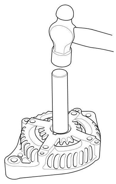 12. Install a new front bearing in the drive-end housing with a hammer, the driver handle, 15 x 135L, and the bearing driver attachment, 42 x 47 mm.
