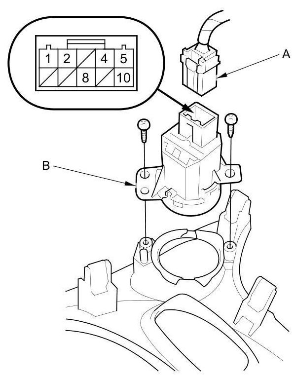 2. Disconnect the 10P connector (A) from the engine start/stop switch (B).