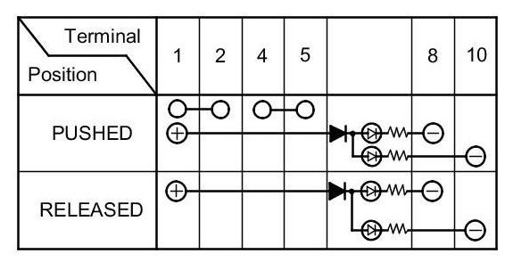 4. Check for continuity between the terminals in each switch position according to the table.