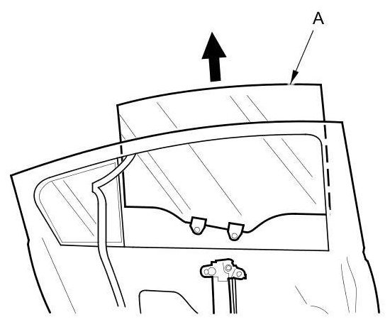 14. Remove the quarter glass (A).