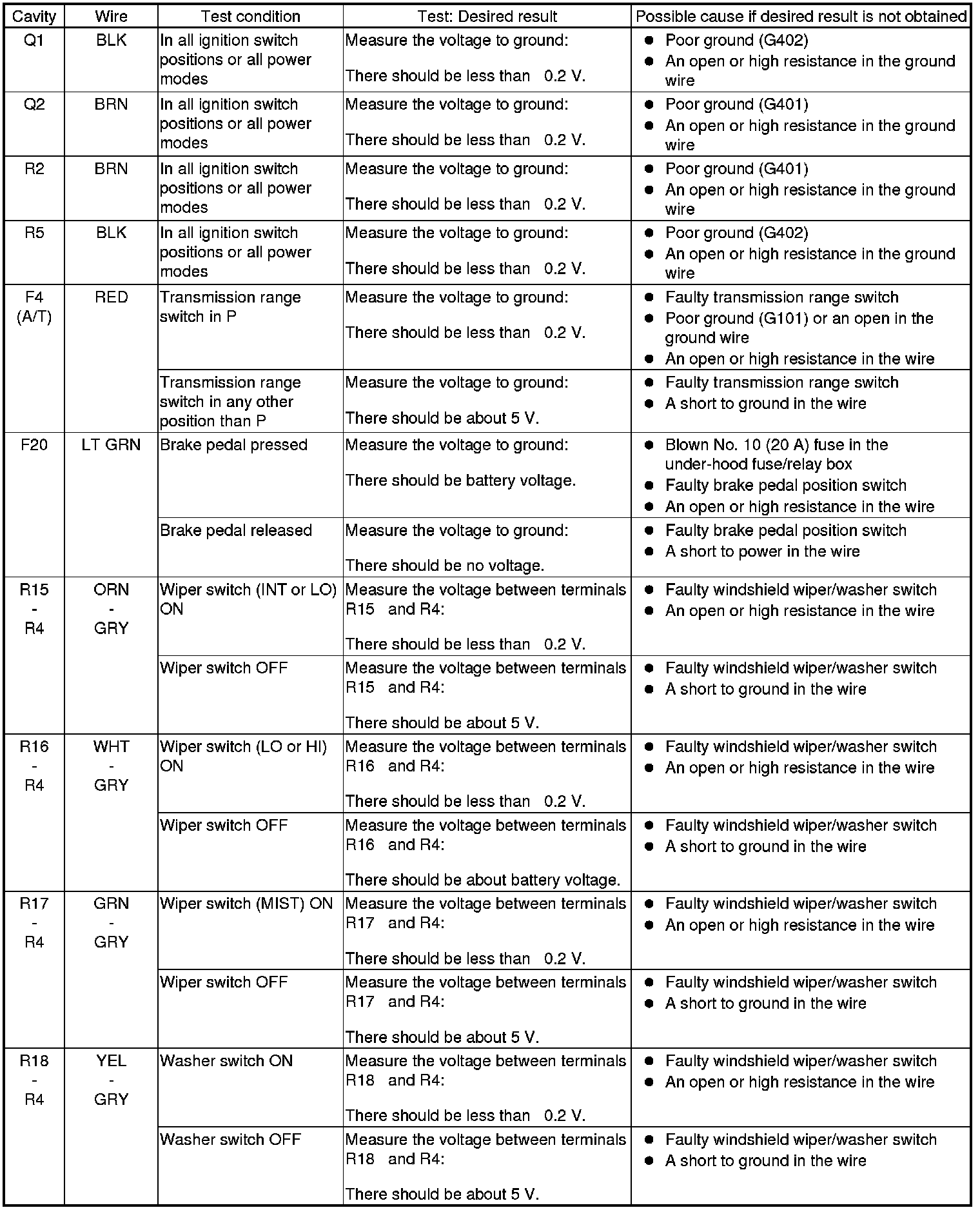 Wipers/Washers (Drivers and Passengers MICU) Input Test