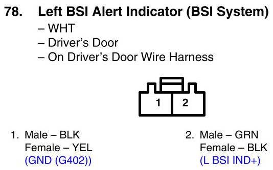 Left BSI Alert Indicator Connector View (BSI System)