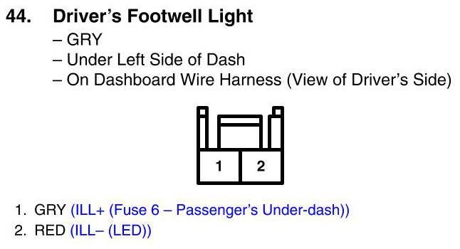View 44 - Driver's Footwell Light Connector View