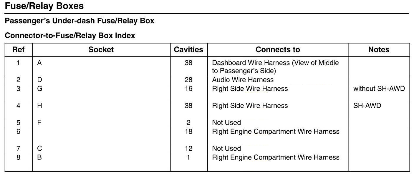 Passenger's Under-Dash Fuse/Relay Box - Connector-to-Fuse/Relay Box Index