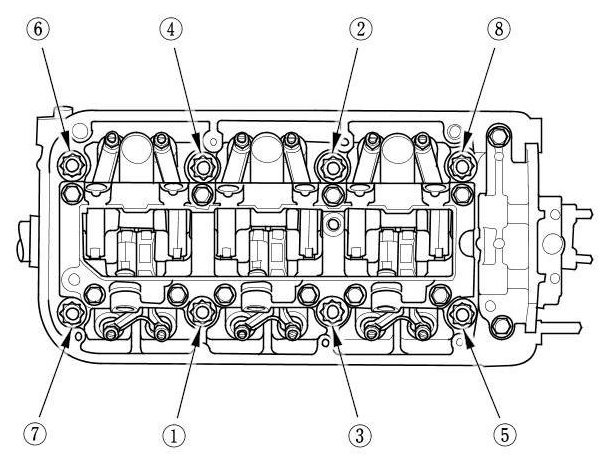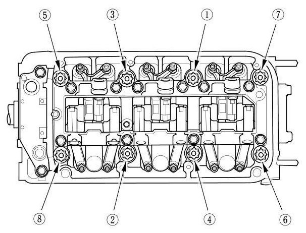 Torque the cylinder head bolts in sequence to 29 Nm (3.0 kg-m, 22 lb-ft)