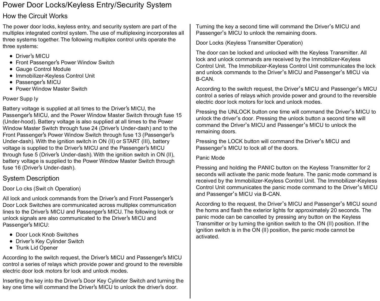 How The Power Door Locks/Keyless Entry/Security System Circuit Works