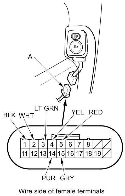 - If the left mirror does not tilt down (or does not swing left), check for an open in the GRY (or YEL) wire between the left mirror and the 20P connector. If the wire is OK, check the left mirror actuator.