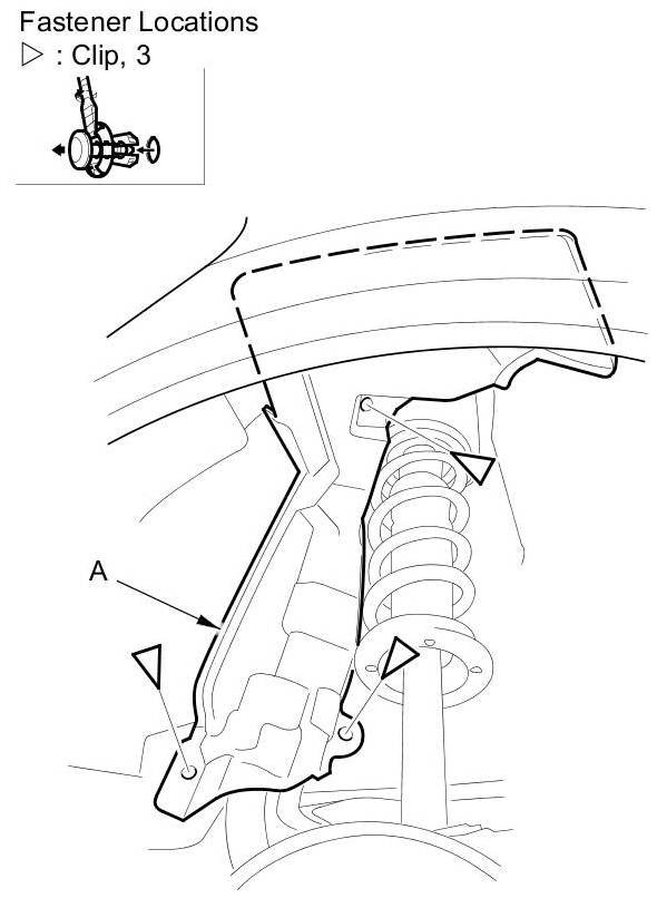 2. Detach the clips, then remove the fuel pipe protector (A).