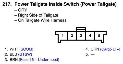 View 217 - Power Tailgate Inside Switch Connector View (Power Tailgate)