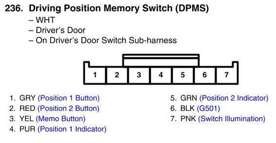 View 236 - Driving Position Memory Switch Connector View (DPMS)