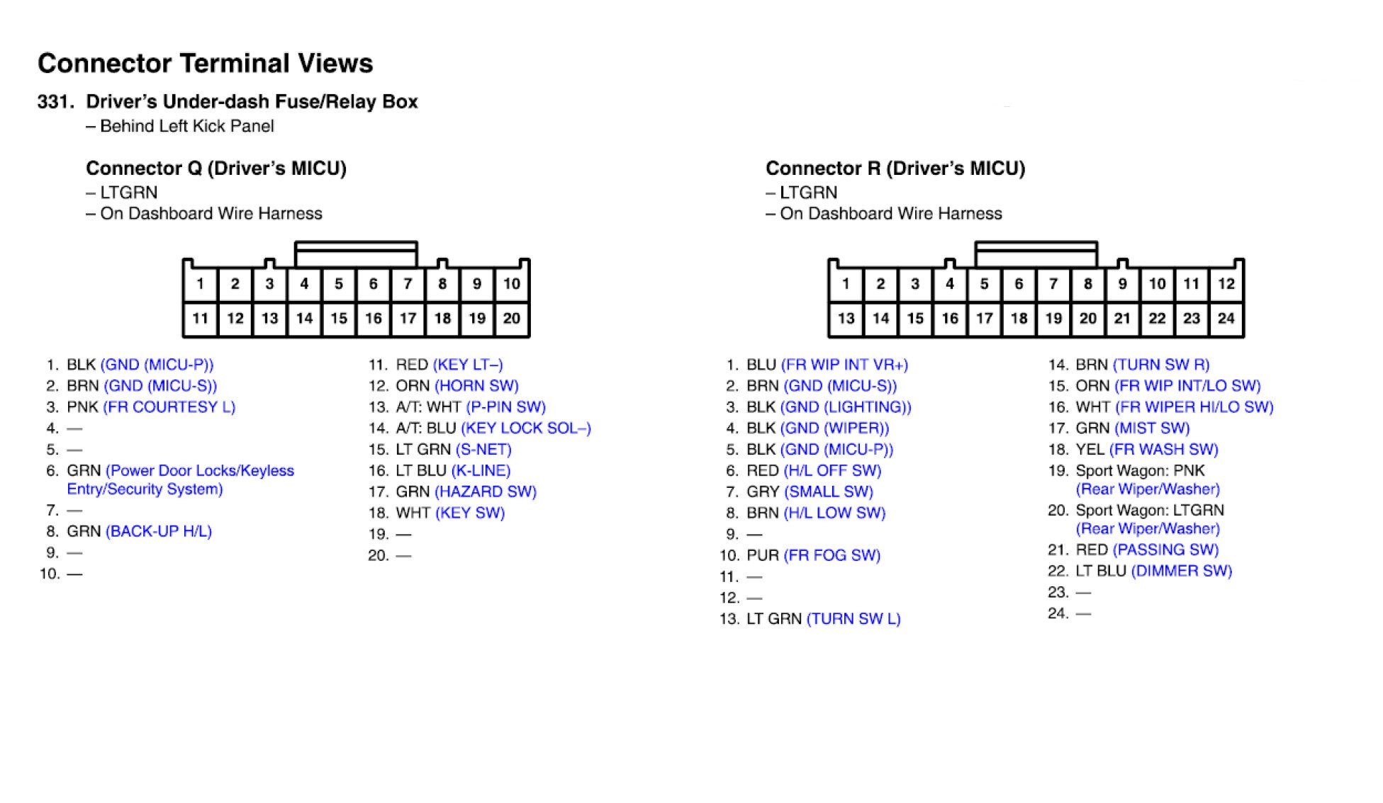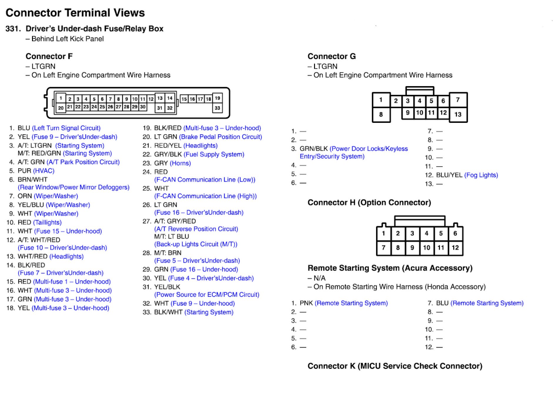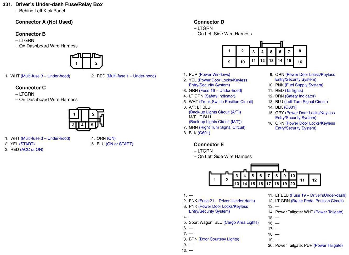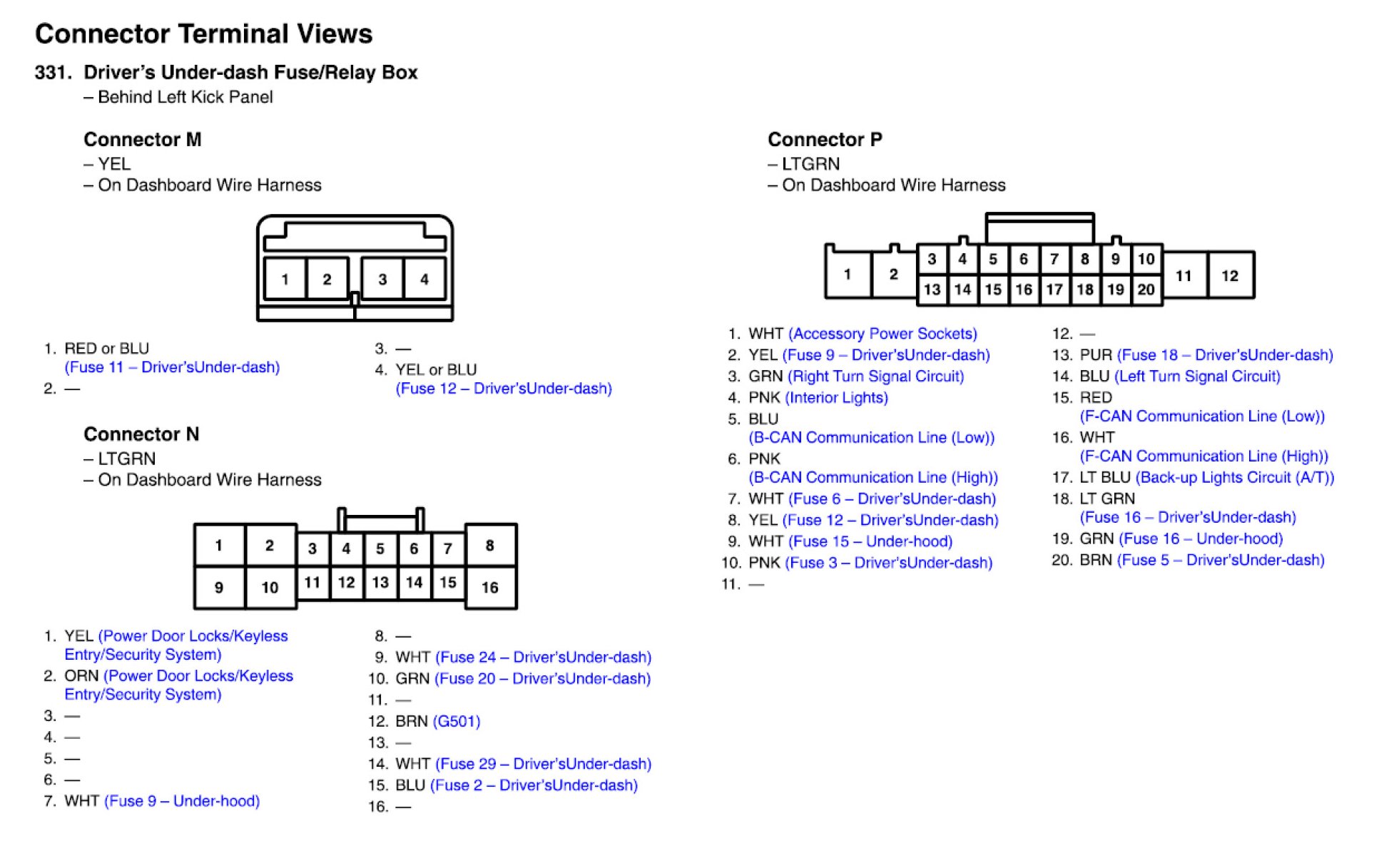 Driver's Under-dash Fuse/Relay Box Connector View
