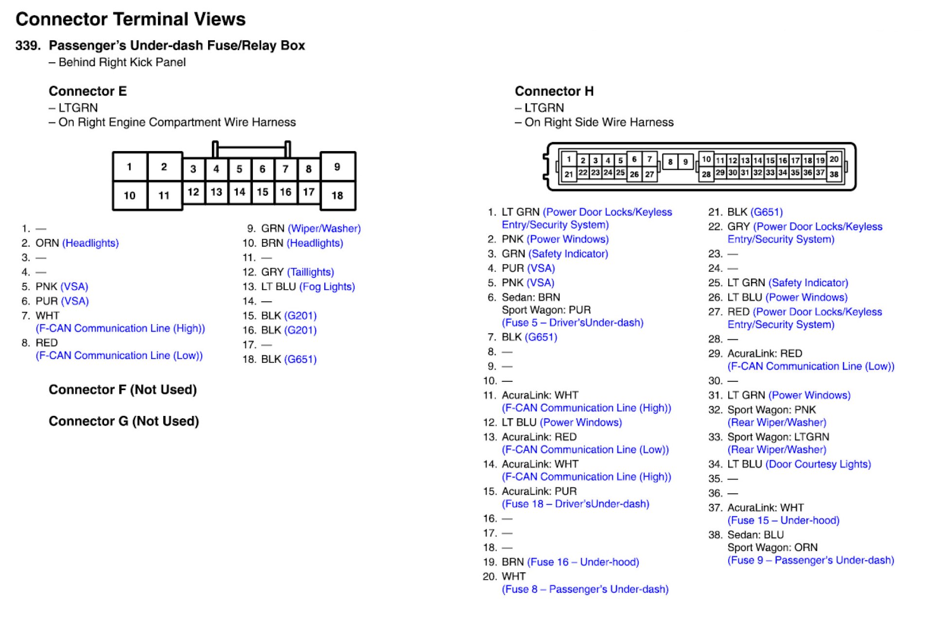 Passenger's Under-dash Fuse/Relay Box Connector View