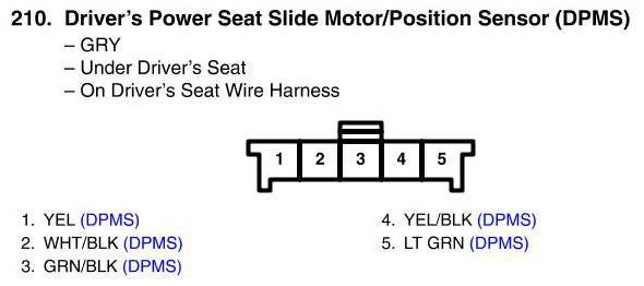 Driver's Power Seat Slide Motor/Position Sensor Connector View (DPMS)