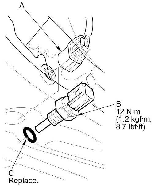 4. Install ECT sensor 2 with a new O-ring (C).