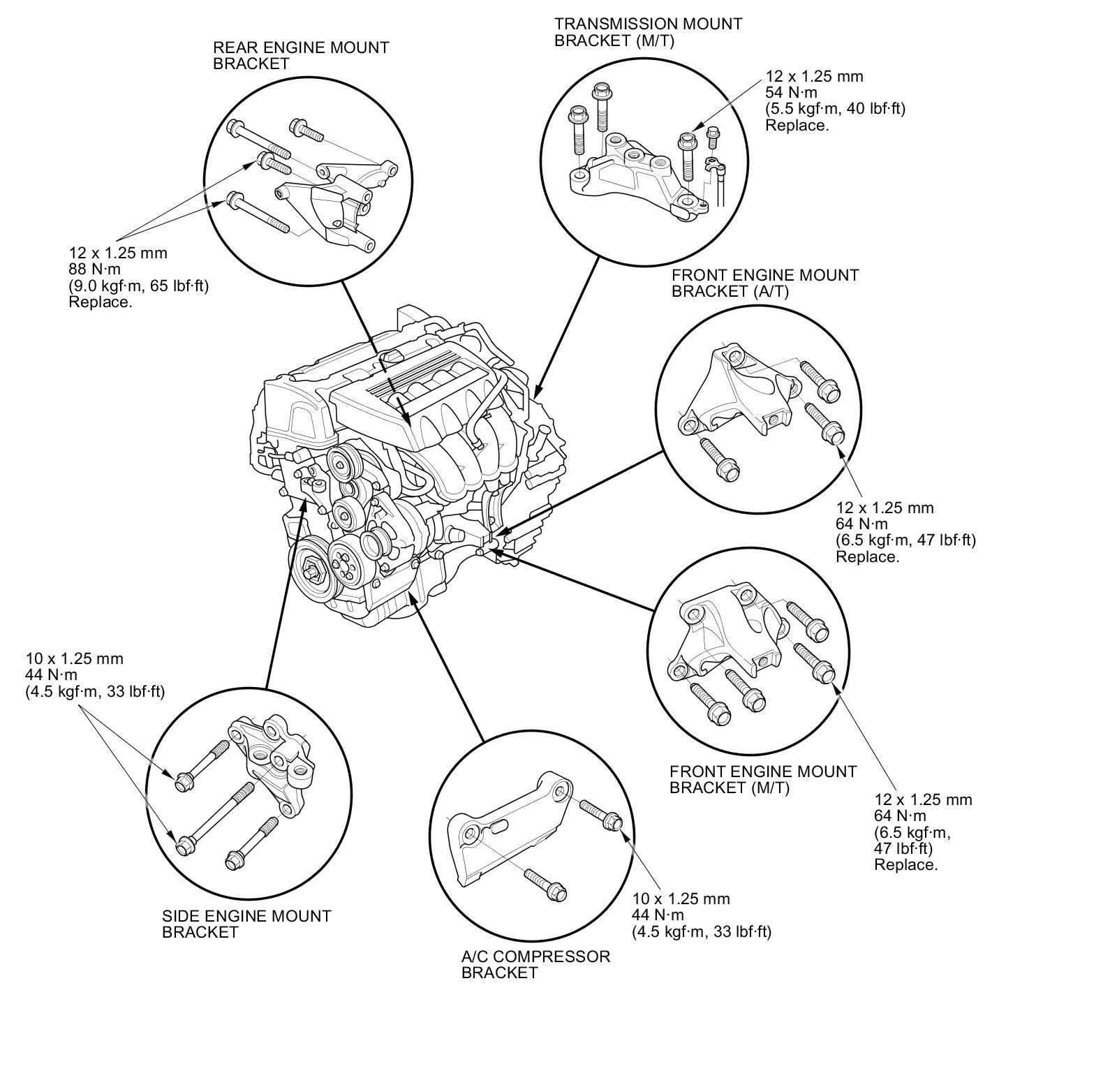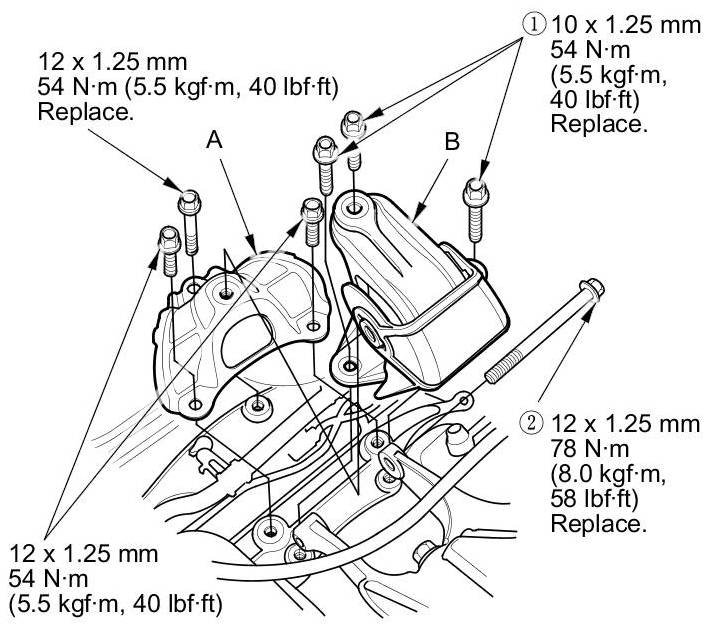 NOTE: Reinstall the mounting bolts/support nuts in the sequence given in the following steps. Failure to follow this sequence may cause excessive noise and vibration, and reduce engine mount life.