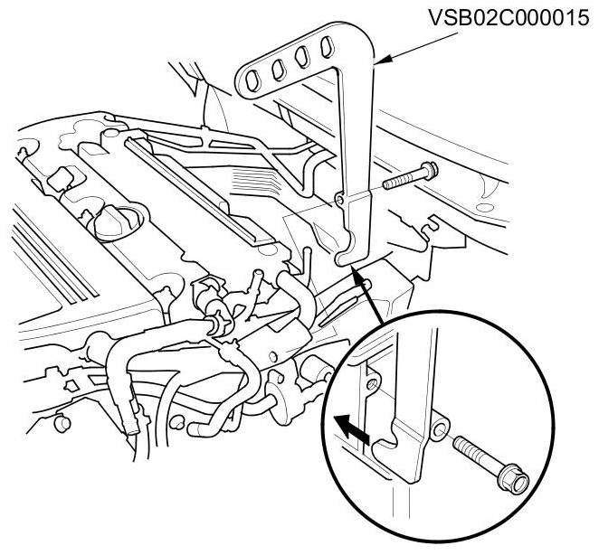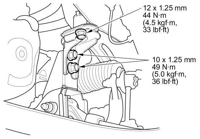 34. Loosen the upper transmission mount bracket mounting bolts, then retighten them to the specified torque.