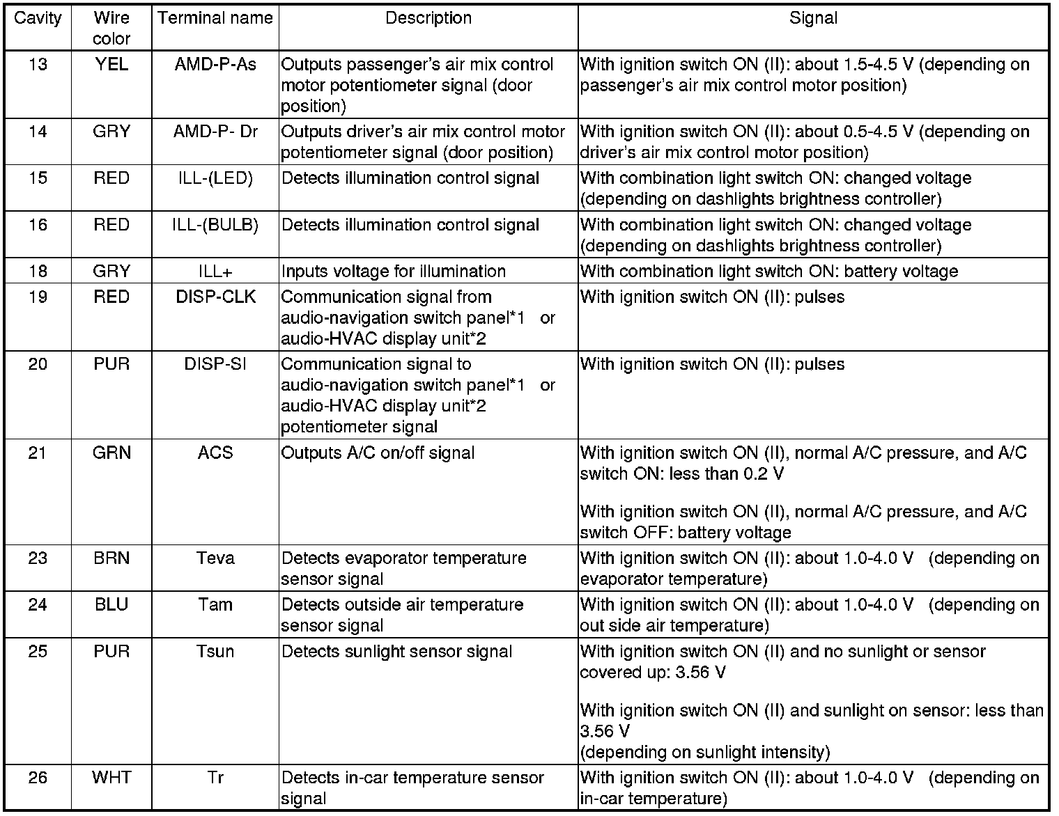 In the event that the navigation system malfunctions, or when driving in areas where the navigation system cannot determine the vehicle position (non-coverage areas, tunnels, etc.), the climate control system will operate the same as a vehicle without navigation.