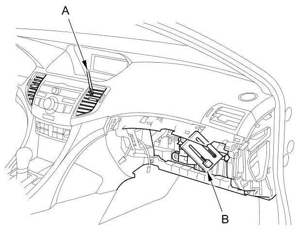 4. Remove the passenger's dashboard trim Passenger's Dashboard Trim Removal / Installation, then remove the glove box Glove Box Removal / Installation.