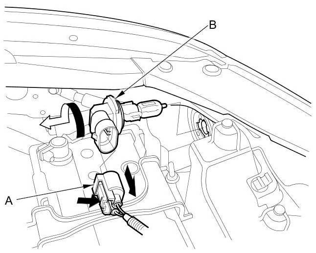 5. Disconnect the 1P connector (A) from the headlight bulb (B).