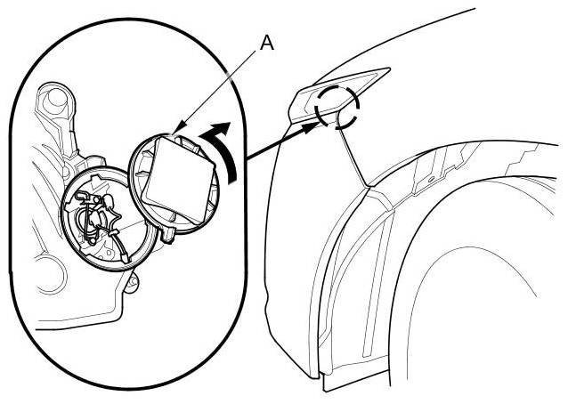 4. Turn the cover (A) 45 ° counterclockwise to remove it from the headlight assembly.