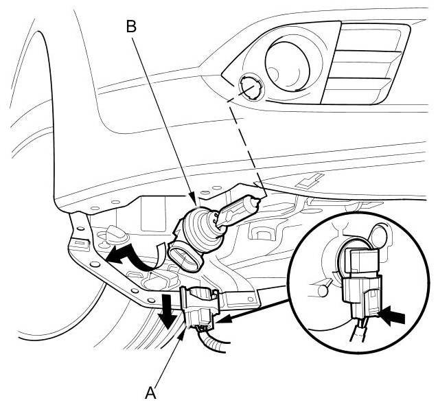 2. Disconnect the 2P connector (A) from the fog light (B).