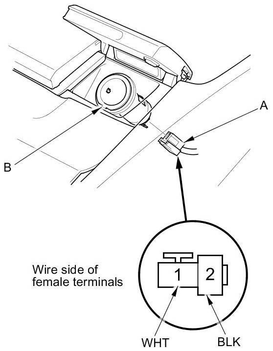 2. Disconnect the 2P connector (A) from the front accessory power socket (B).