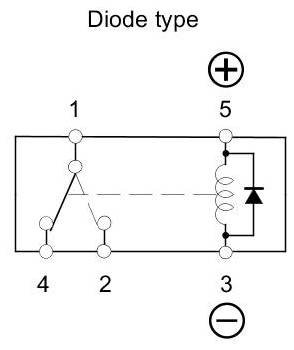 - There should be continuity between terminals No. 1 and No. 2 when battery power is connected to terminal No. 5, and body ground is connected to terminal No. 3.