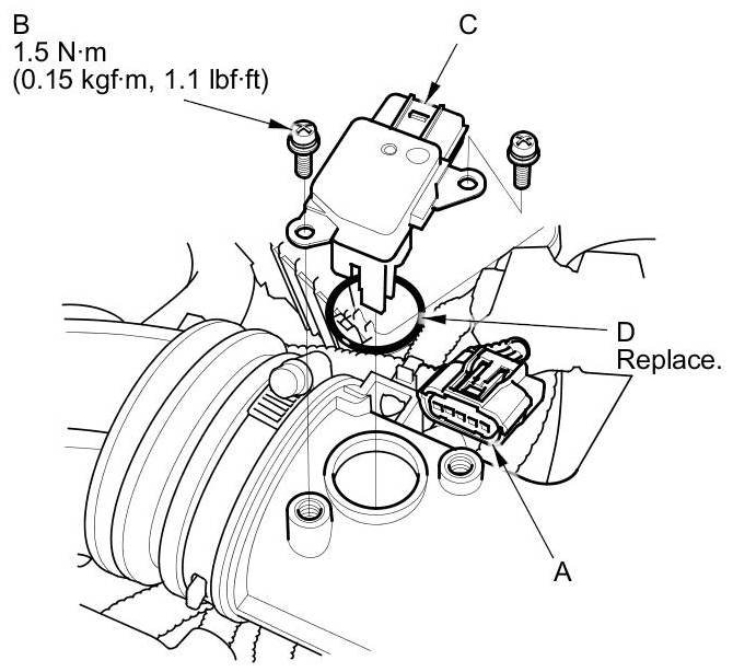 1. Disconnect the MAF sensor/IAT sensor connector (A).