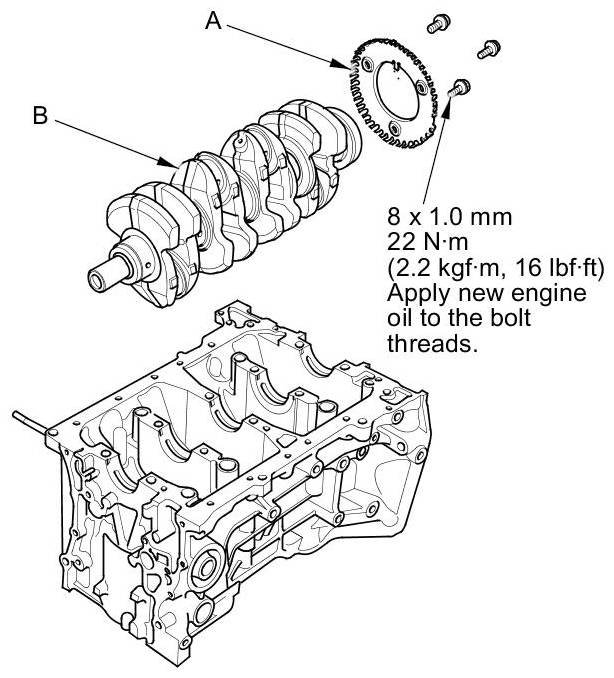 NOTE: When installing the crankshaft, refer to the crankshaft installation procedure Crankshaft Installation.