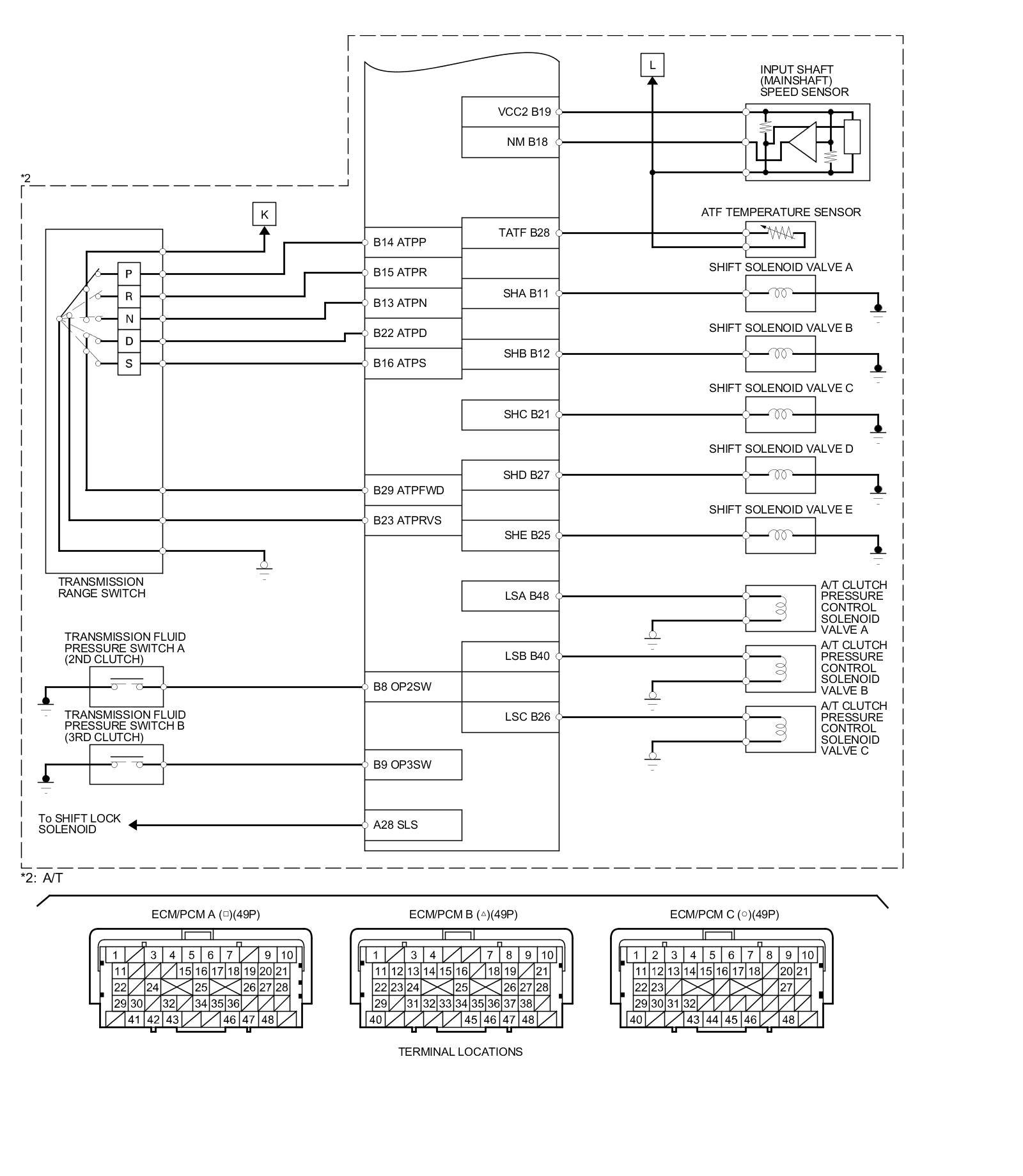 ECM/PCM Inputs and Outputs at ECM/PCM Connector B (triangle) (49P)