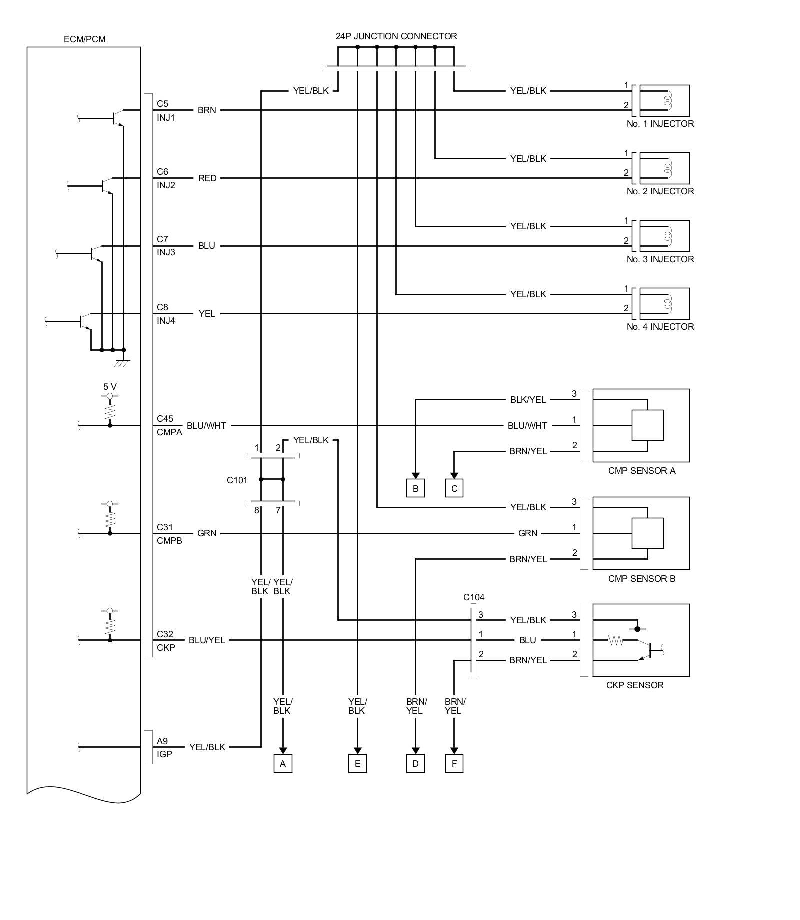 ECM/PCM Inputs and Outputs at ECM/PCM Connector C (circle) (49P)