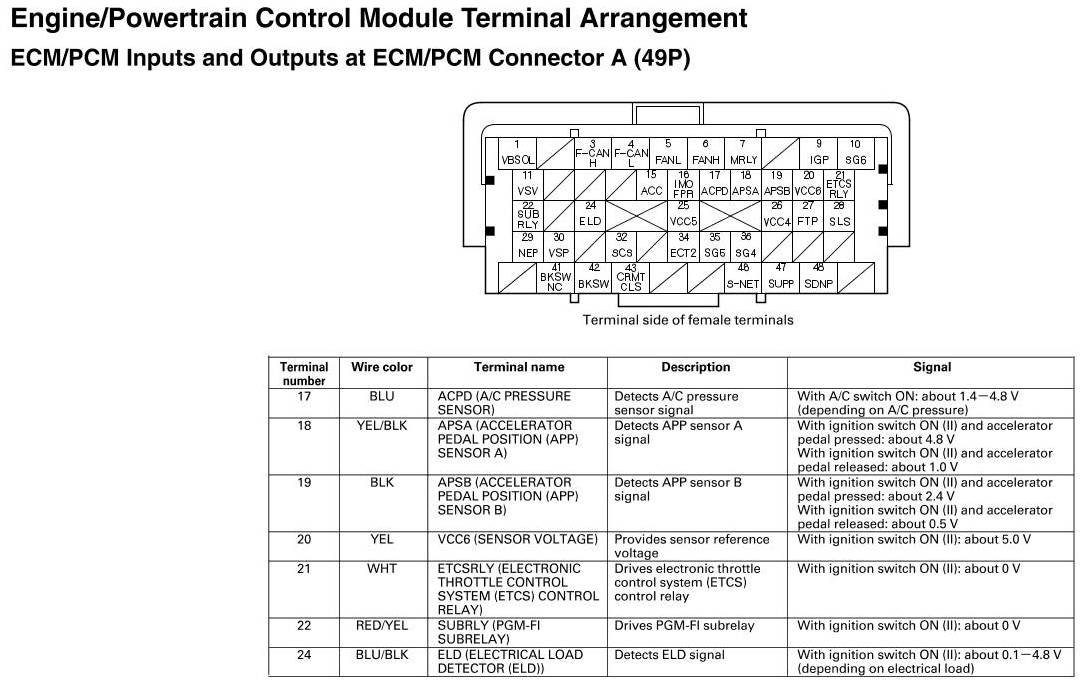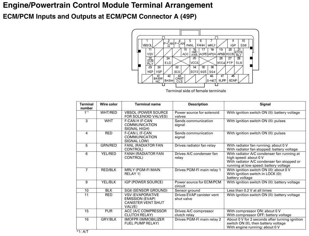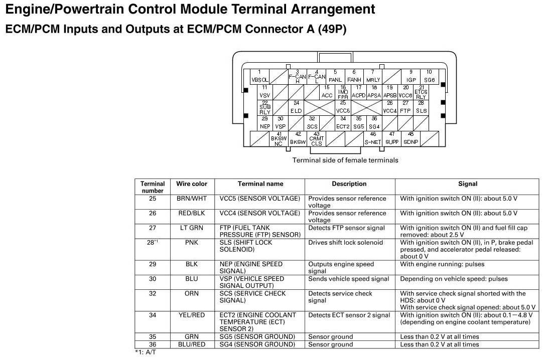 ECM/PCM Inputs and Outputs at ECM/PCM Connector A (49P)