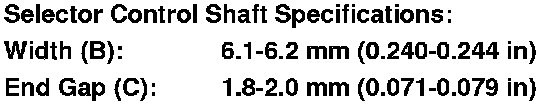 If the measurement is out of the specification, repair the selector control shaft end, and recheck the transmission range switch continuity.