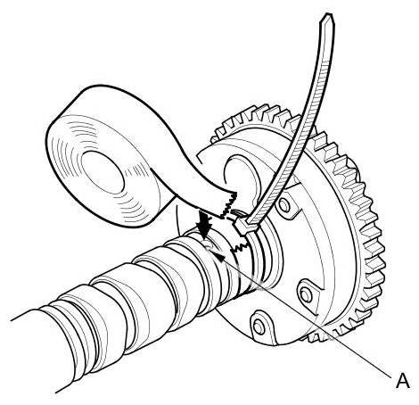 6. Seal the retard holes (A) in the No. 1 camshaft journal with tape and a wire tie.