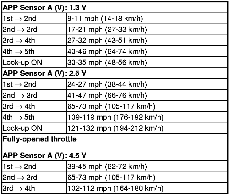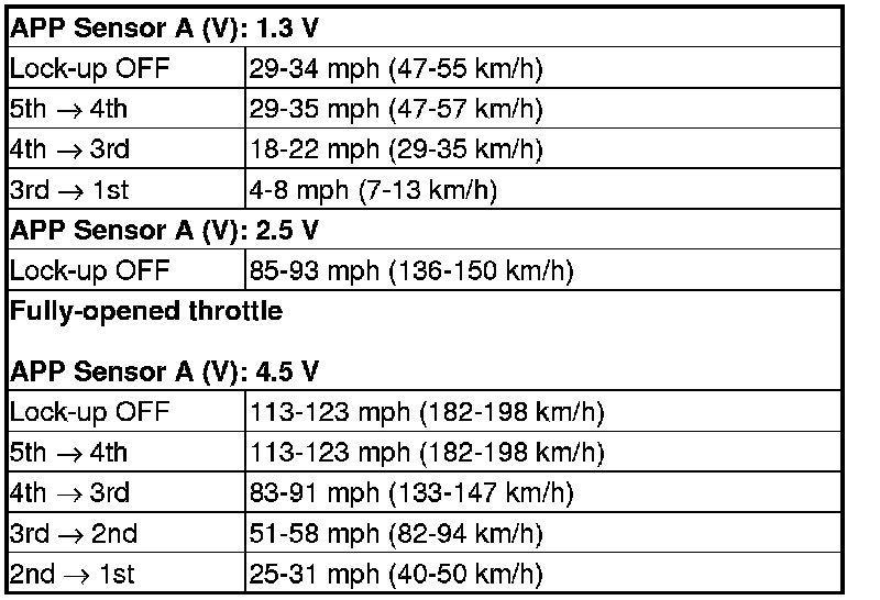 8. Accelerate quickly until APP Sensor A reads 1.3 V. Maintain a steady throttle until the transmission shifts to 5th gear, then slow the vehicle and come to a stop.