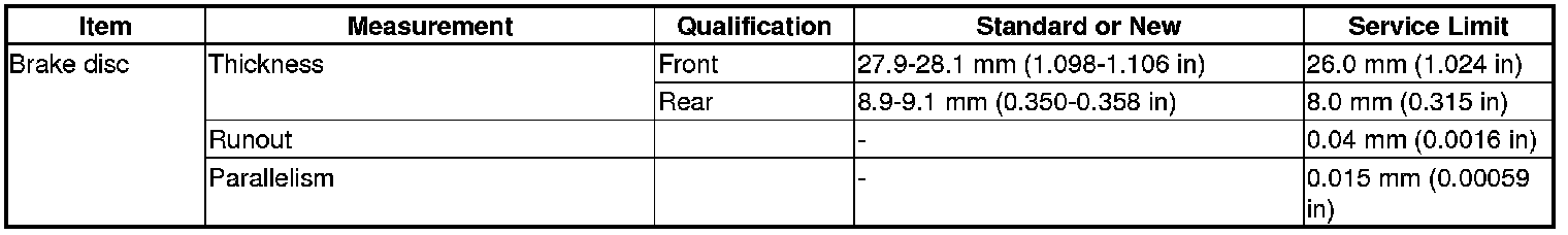 Brake Disc Specification(s)