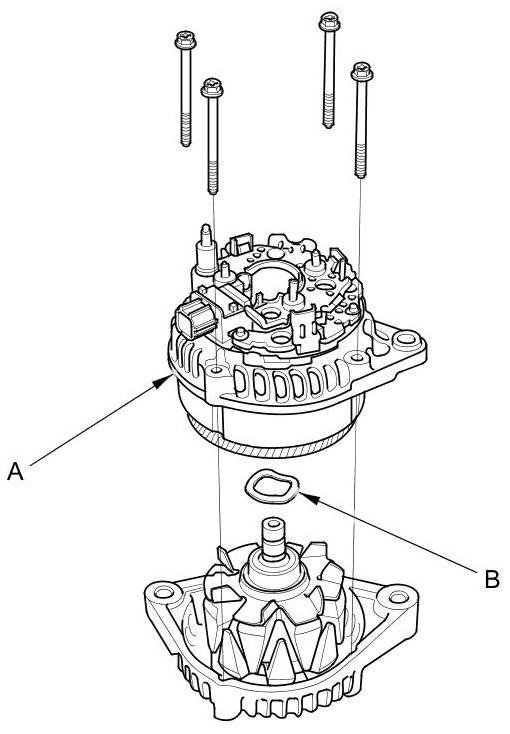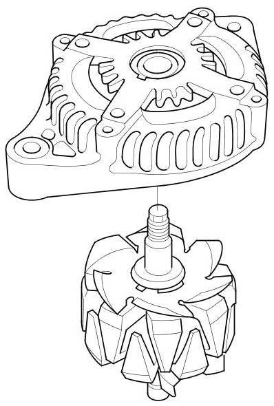 22. After assembling the alternator, turn the pulley by hand to make sure the rotor turns smoothly and without noise.