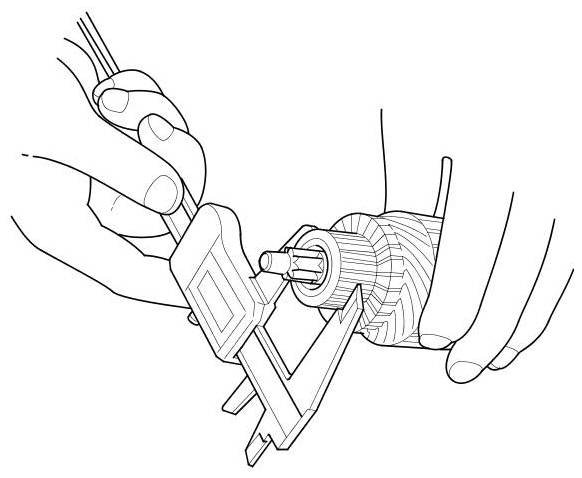 4. Check the commutator diameter with a digital caliper or dial type caliper. If the diameter is below the service limit, replace the armature.
