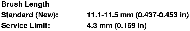 10. Measure the brush length. If it is shorter than the service limit, replace the brush holder assembly.