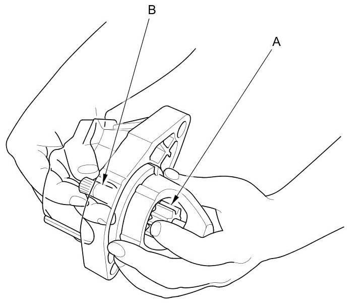 16. Install the brush into the brush holder, and set the armature (A) in the brush holder (B).