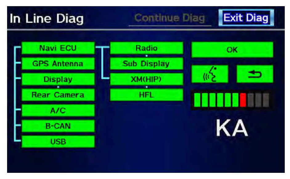 2. You may see the factory In Line Diagnosis screen below. If so, do the following. If not, go to step 3.