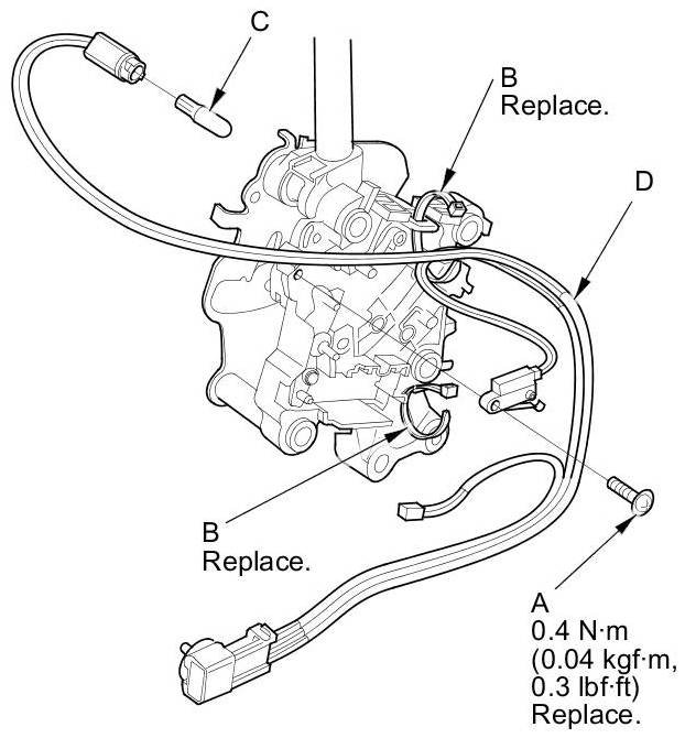 NOTE: The park pin switch, the A/T gear position indicator panel light harness, and the shift lock solenoid harness are not available separately. Replace the park pin switch, the A/T gear position indicator panel light harness, and the shift lock solenoid harness as a set.