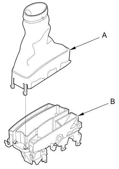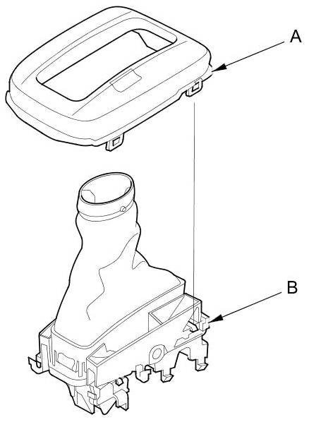 7. Replace the shift lever boot (A) or the A/T gear position indicator panel base (B).