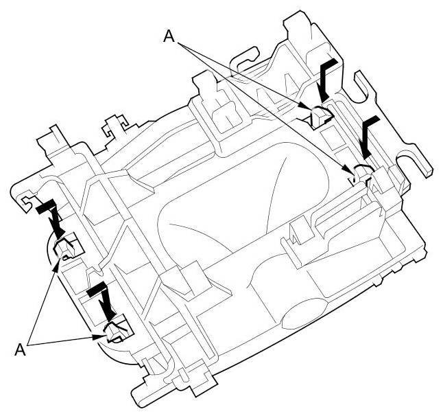10. Install the A/T gear position indicator panel base (A) on the shift lever bracket (B).