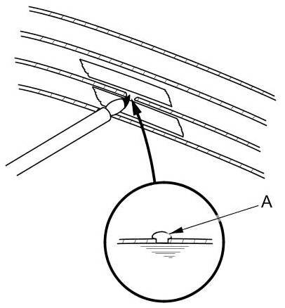 1. Lightly rub the area around the broken section (A) with fine steel wool, then clean it with isopropyl alcohol.