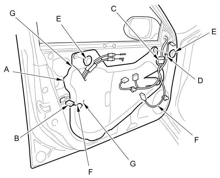 1. Remove the door panel Front Door Panel Removal / Installation.