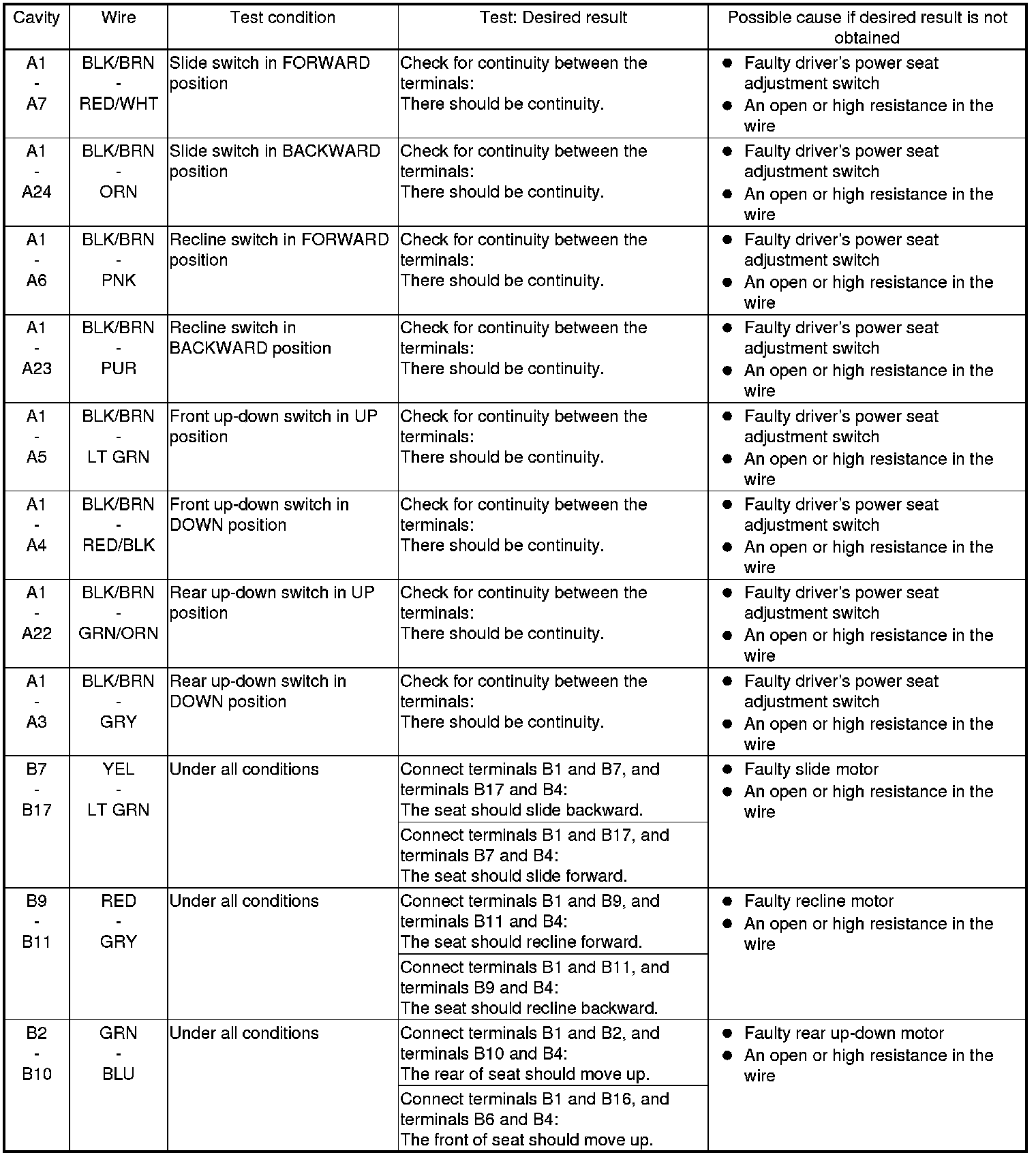 Power Seat Control Module: Testing and Inspection